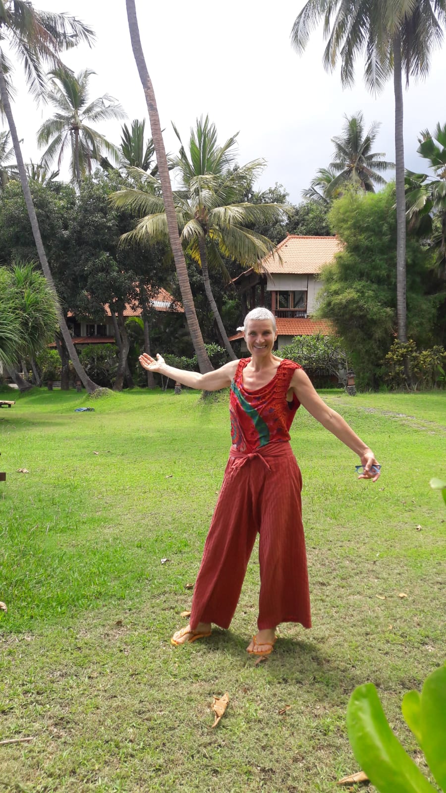 In 2000 she had invited me to accompany her to Bali, where she and another friend were building a retreat center called Gaia Oasis in northern Bali not far from Lovina. Although I did not join the actual retreat project (which was very inexpensive to join!), I did stay at the beautiful home that was built for her, right by the sea where I spent a week on silent retreat week after she had returned back to Germany. I could feel how deeply Gabriela Zamyat loved the Balinese people and culture, even though she did not actually spend much time on Bali after her house was built. So, when she told me that she would return to Bali at the end of November 2018, I felt that this was an important closure for her. She was always so intuitive, and had said that she needed to make a bridge between her old life and the new one that was still to come. Whilst on Bali, she sent me several messages about the great joy she had in being there, along with this picture which shows her radiant beauty and light. Although her physical presence will be very much missed, she will always have a deep home within my heart, and her music continues to reverberate through the cosmos forever….